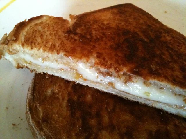 I toasted some organic sandwich bread, smeared a nice thick layer of our “I Eat Brooklyn Hot Pepper Jelly” on one side, rubbed a hunk of garlic on the other, added some super sharp chedder and grilled it on the stove until it was melty and toasty. So good. The pepper jelly adds just the right bite of sweet and spicy to the cheesy goodness. This may be my new addiction.